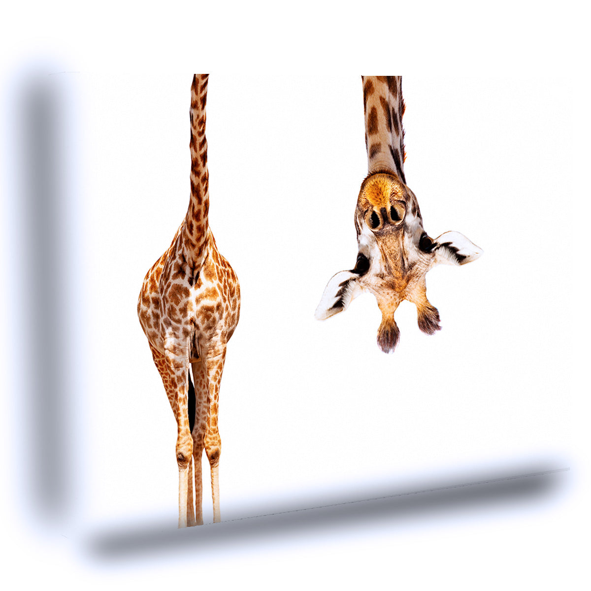 Cuadro Decorativo de Jirafa con la Cabeza Inclinada sobre Fondo Blanco. – Impresión en Canvas o Aluminio