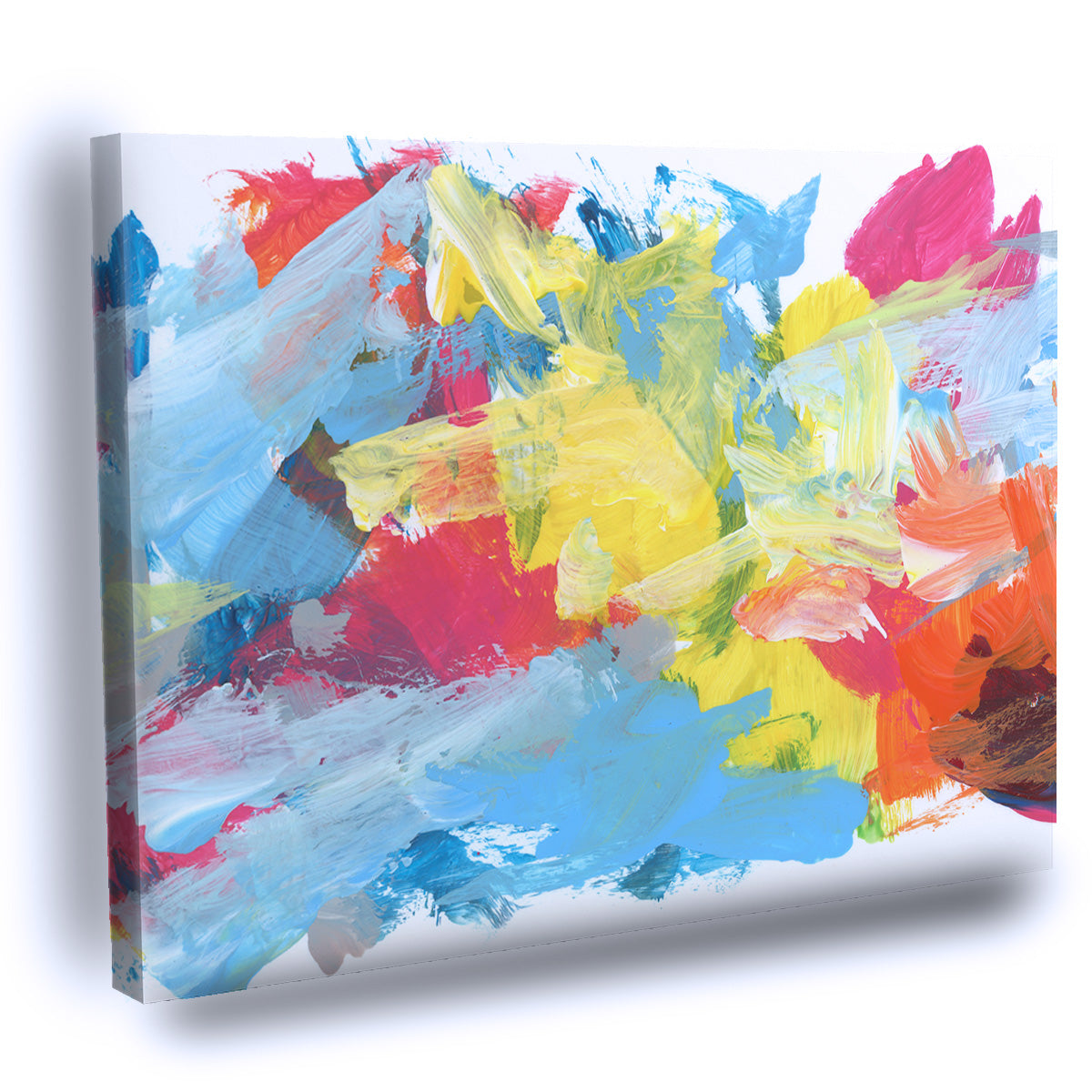 Cuadro abstracto con manchas de colores amarillos, naranjas, azules, magentas entre otros, este cuadro dará mucha vitalidad en cualquier espacio que lo coloques.